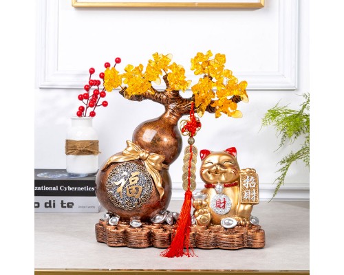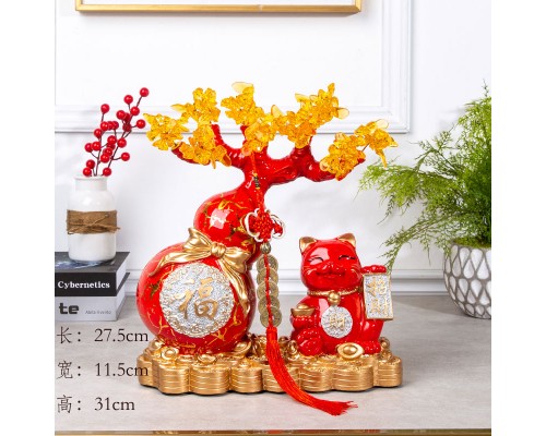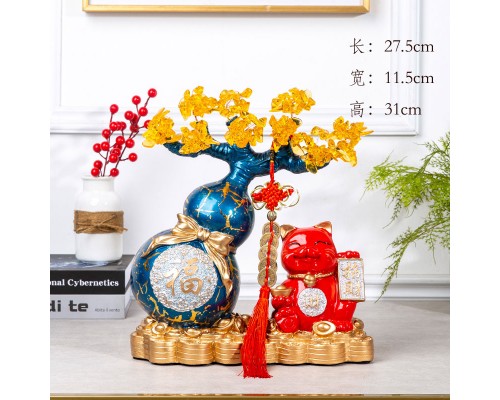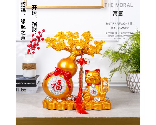 創意客廳電視柜酒柜大號招財貓水晶發財樹葫蘆存錢罐開業喬遷擺件