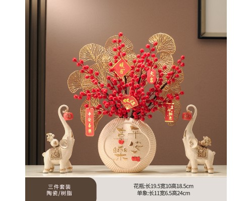 平安喜樂花瓶+花色福祿象 (紅果3+金葉2+掛牌) (NT1,431)