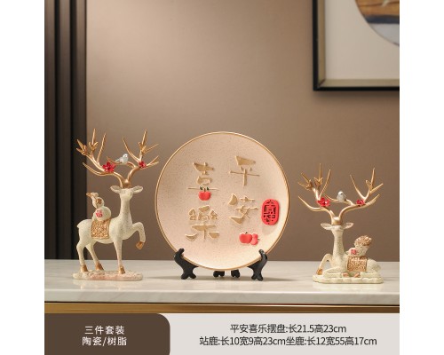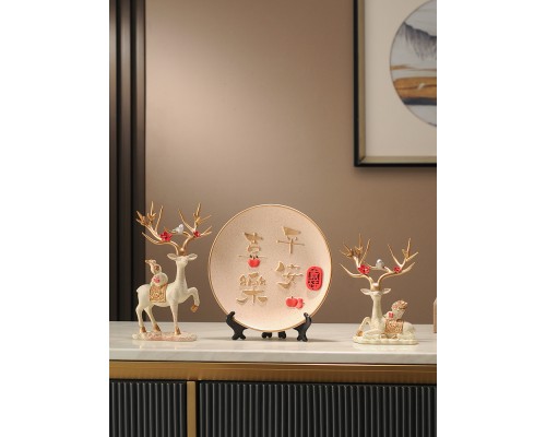 平安喜樂裝飾盤+花色福鹿 (NT638)