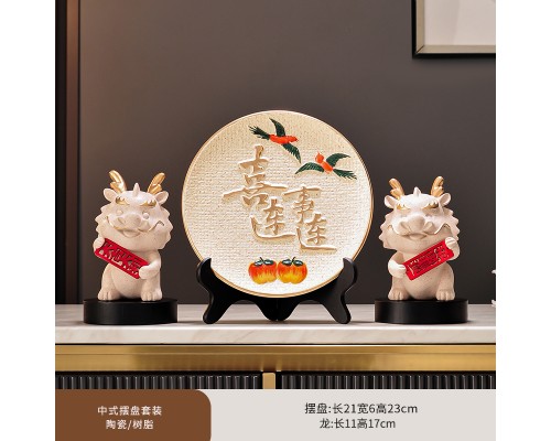 暖居如意裝飾盤+龍擺件一對 (NT1,251)