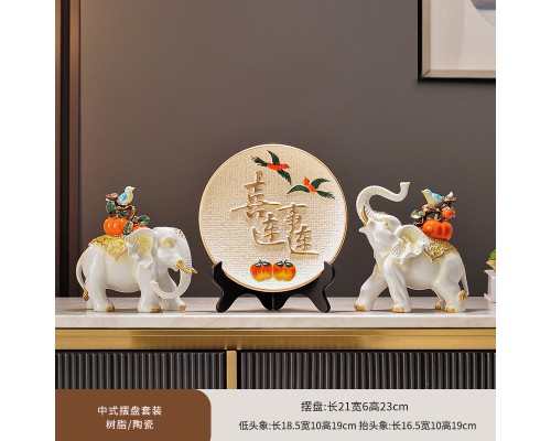 暖居如意裝飾盤+白色大象一對 (NT1,611)