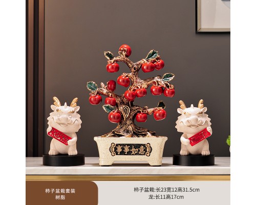 盆栽柿子樹+龍擺件一對 (NT1,774)
