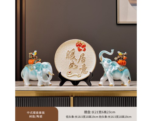 暖居如意裝飾盤+淺藍大象一對 (NT1,611)