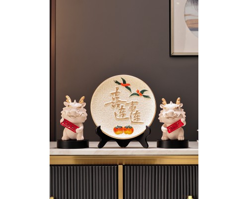 喜事連連裝飾盤+龍擺件一對 (NT1,251)