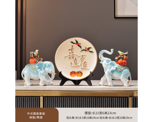 喜事連連裝飾盤+淺藍大象一對 (NT1,611)