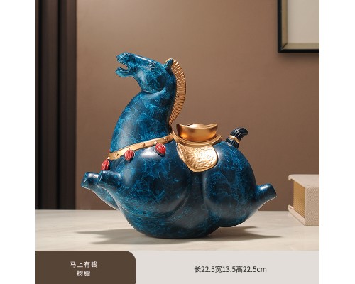 新中式馬上有錢辦公室老板桌馬到成功馬擺件家居存錢罐裝飾工藝品