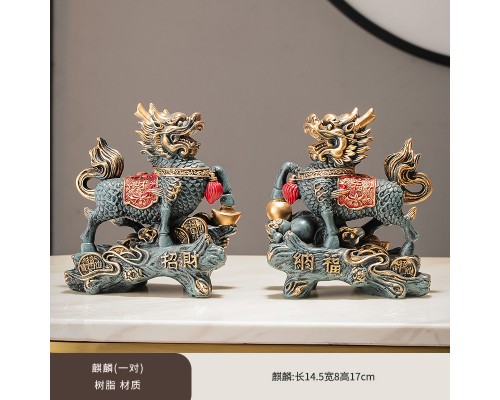麒麟擺件一對+聚寶盆裝飾擺件 (NT2,494)