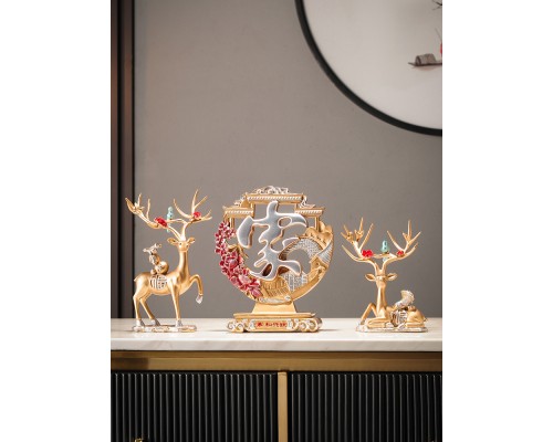 福祿百財鹿一對+家三件套【金色】 主圖款 (NT892)