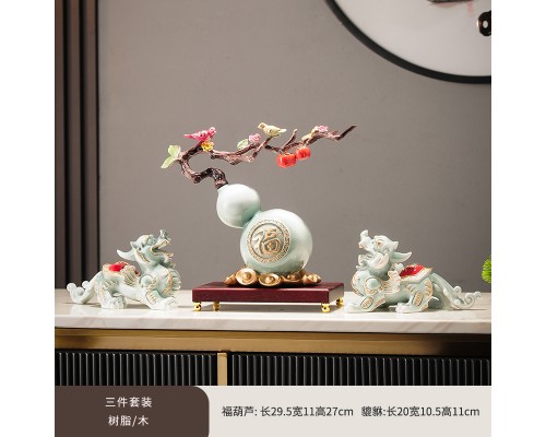 如意葫蘆擺件【淺藍】+貔貅擺件一對【淺藍】 (NT2,224)