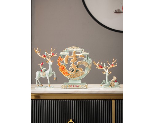 福祿百財鹿一對+家三件套【淺藍】 (NT892)