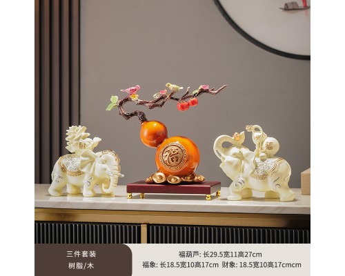 如意葫蘆擺件【橙】+福祿百財象【奶白】 (NT2,494)