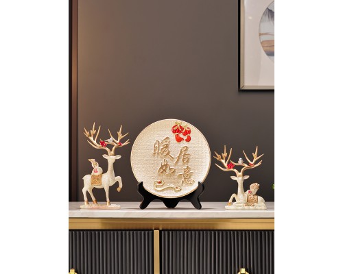 暖居如意裝飾盤+花色福鹿 (NT728)