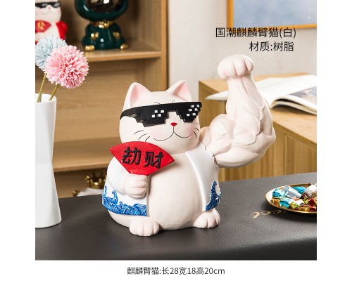 白色國潮麒麟臂招財貓存錢罐可取 (NT1,342)