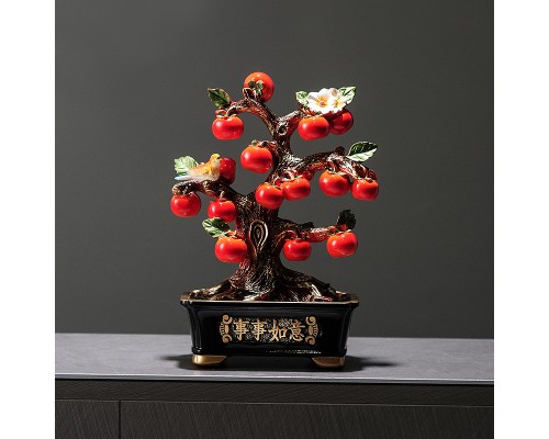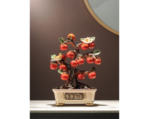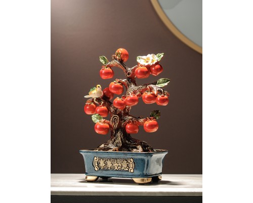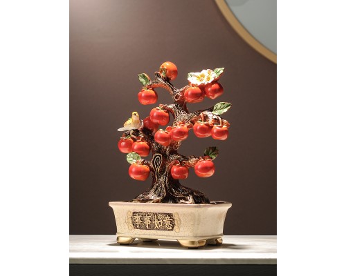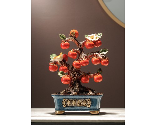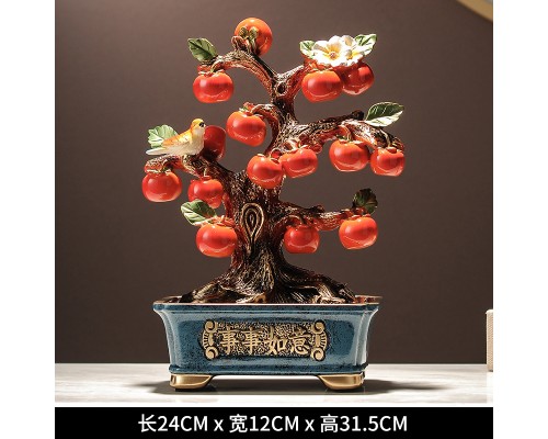 新中式盆栽柿子樹裝飾擺件 喬遷新居客廳玄關電視柜酒柜辦公飾品