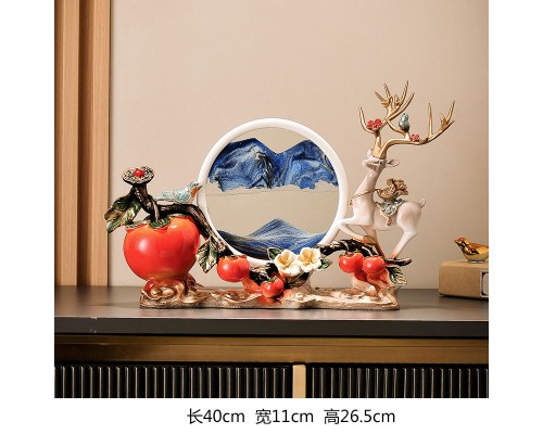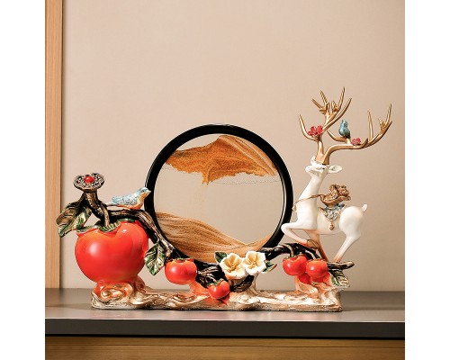 米白色一鹿相伴柿柿如意【橙流沙】