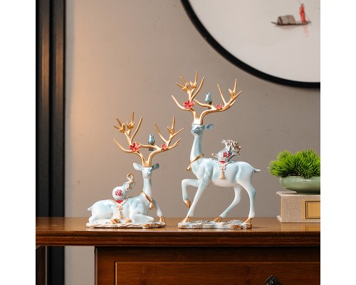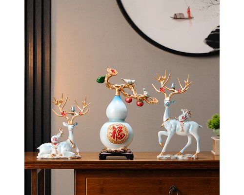 淺藍色云鹿一對+葫蘆(送中國結) (NT2,060)