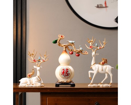 米白色云鹿一對+葫蘆(送中國結) (NT2,060)