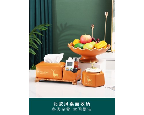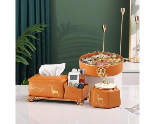 輕奢干果盤--橙色三件套(送牙簽筒、燙金墊) (NT2,710)