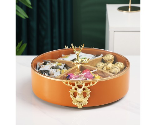 橙色鹿頭帶蓋干果盤 四分格可旋轉 (NT1,360)