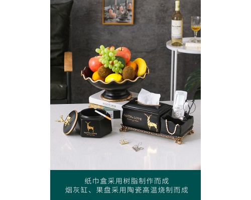 輕奢荷葉果盤--黑色三件套(送牙簽筒、燙金墊) (NT2,410)