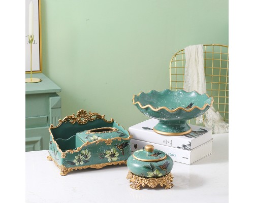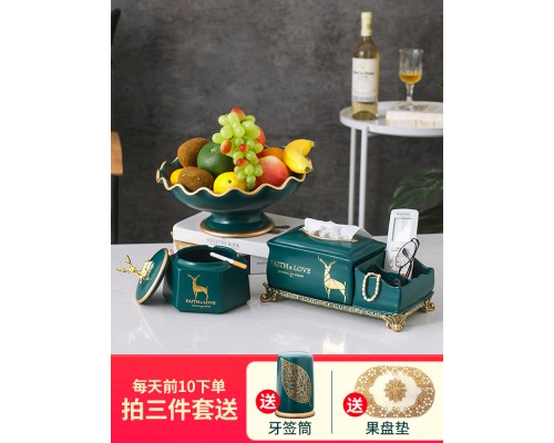 輕奢荷葉果盤--墨綠三件套(送牙簽筒、燙金墊) (NT2,410)