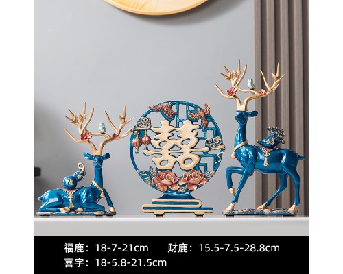 珍珠藍云鹿加囍字三件套(普通包裝)