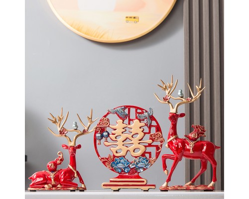 喜慶紅云鹿加囍字三件套(普通包裝)