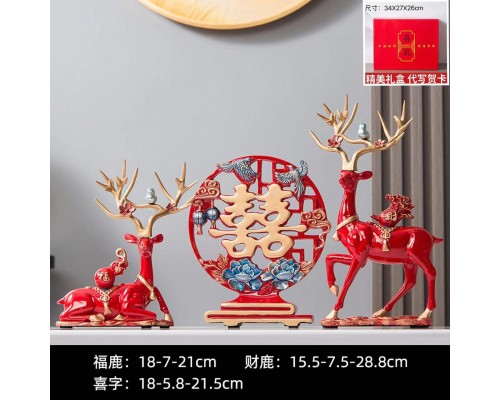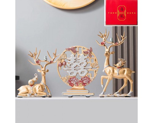 金色云鹿加囍字三件套(禮盒包裝) (NT1,460)