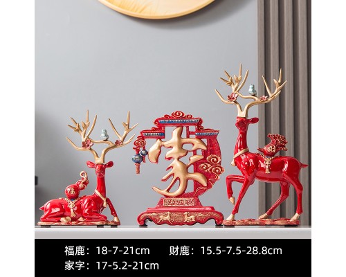 喜慶紅云鹿加囍字三件套(禮盒包裝) (NT1,460)