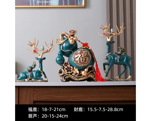 金色云鹿加葫蘆三件套(送中國結) 普通包裝 (NT1,660)
