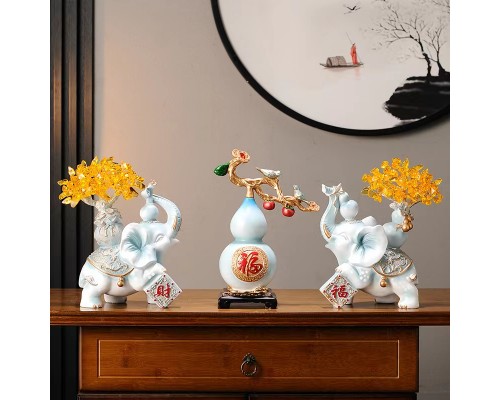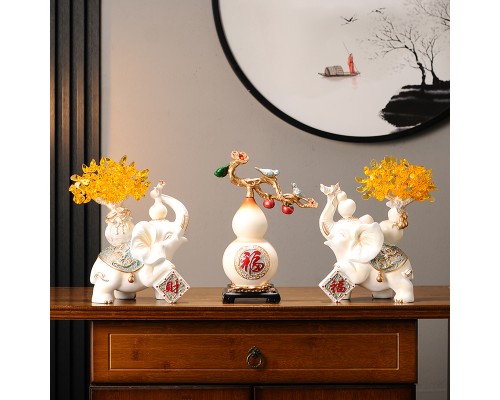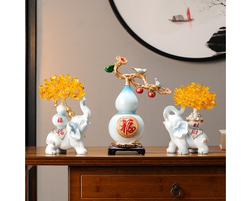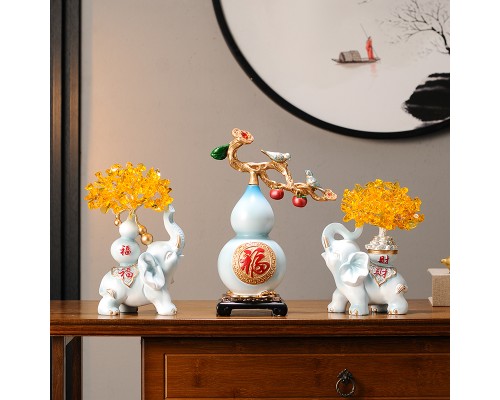 客廳大象擺件三件套水晶創意玄關電視柜桌面裝飾新家喬遷新居禮物