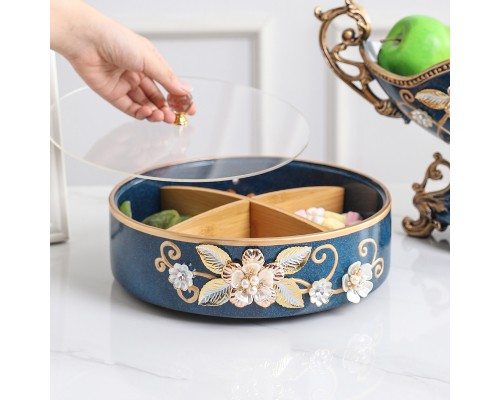 水果盤客廳家用茶幾干果零食盤分格帶蓋歐式樹脂果盤奢華高檔果盤