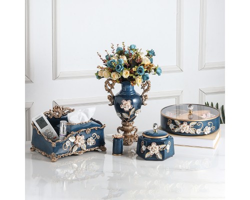 立體花紙巾盒+煙灰缸+干果盤+花瓶佩六束花 (NT4,040)
