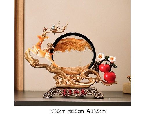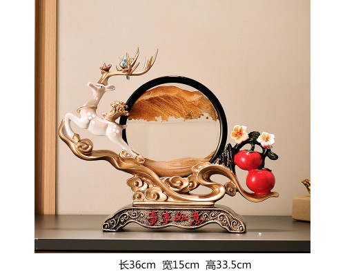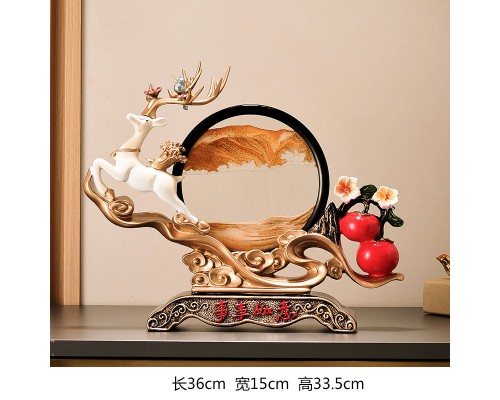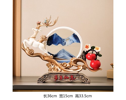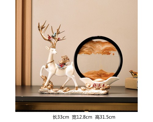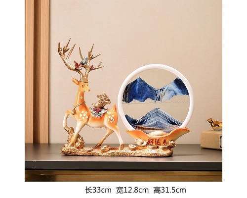 好運來米白色招財鹿+藍流沙