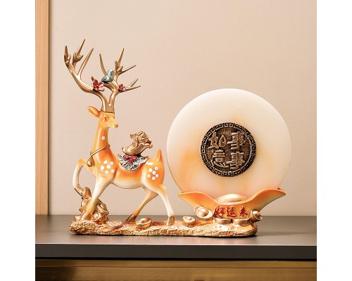 好運來米白色招財鹿+橙流沙