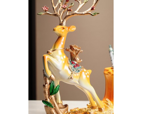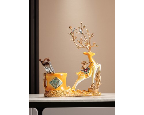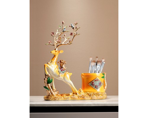 一鹿高升創意擺件帶收納筒書法毛筆筒 簡約新中式家居桌面擺件
