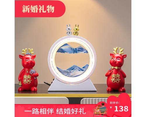 一路相伴喜鹿+情侶兔藍沙燈)(插電/干電池)喜慶紅 (NT1,338)