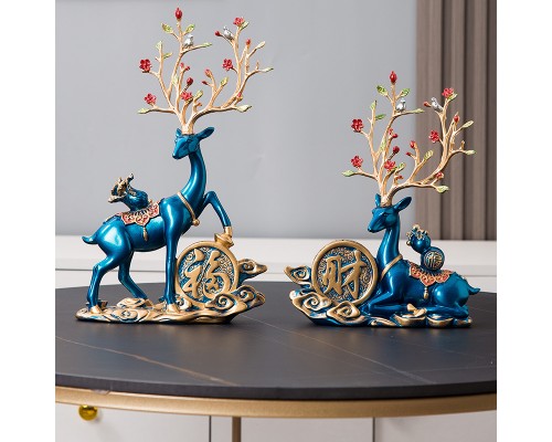 孔雀藍 福財鹿一對(閃藍 (NT913)
