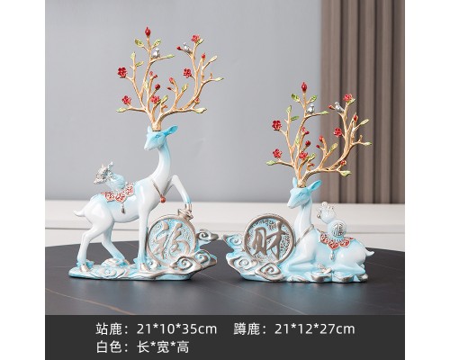 乳白色 福財鹿一對(淺藍 (NT913)