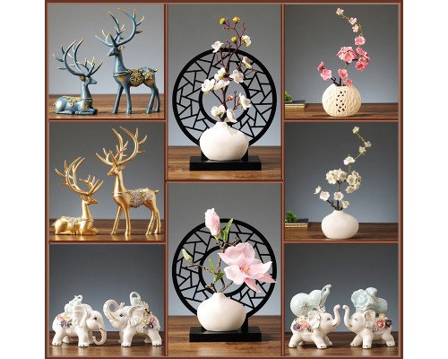 現代簡約客廳陶瓷花瓶鹿擺件家居酒柜電視柜裝飾品臥室創意小擺設