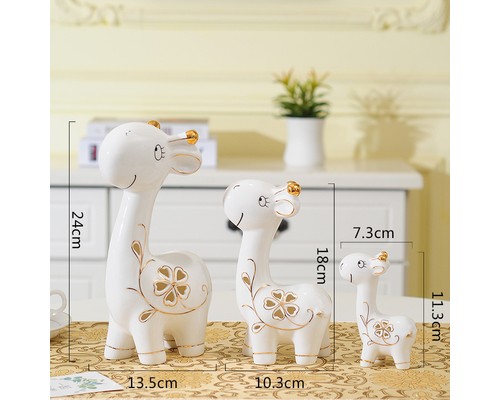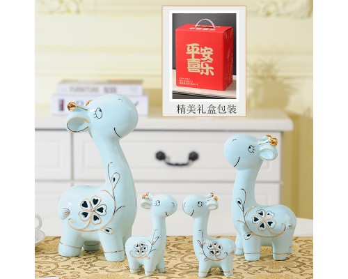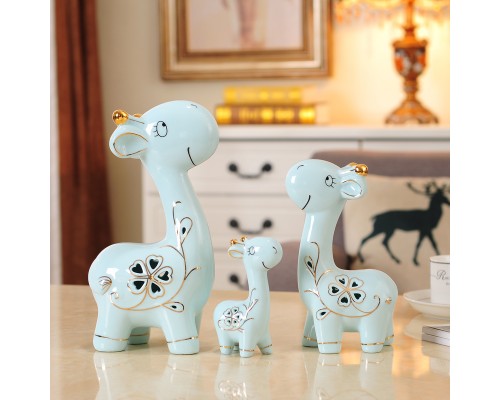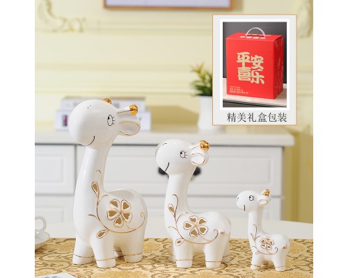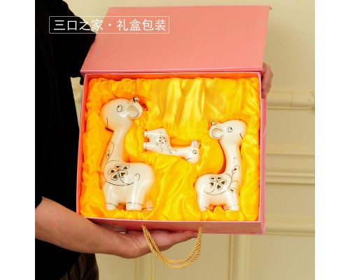 客廳創意陶瓷一家三口擺件一鹿有你家居裝飾品結婚禮物送新人一對