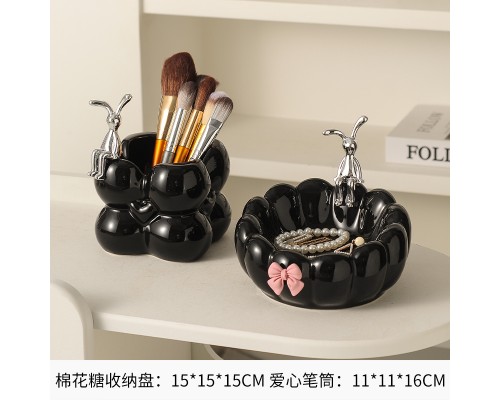 黑色棉花糖盤+黑色心形筆筒 (NT640)