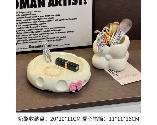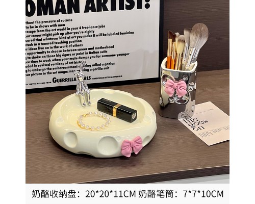 奶黃奶酪盤+銀色奶酪筆筒 (NT668)