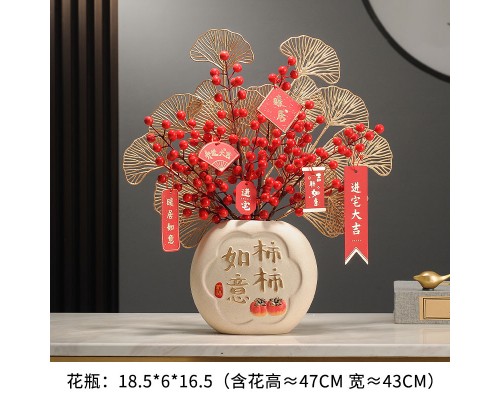 【燙金掛字】柿柿如意花瓶(3柿子) (NT1,145)