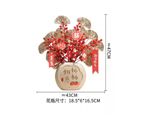 【新婚掛字】柿柿如意花瓶(4果2葉) (NT678)
