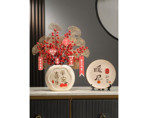 【新婚掛字】柿柿如意花瓶+平安喜樂盤 (NT1,039)