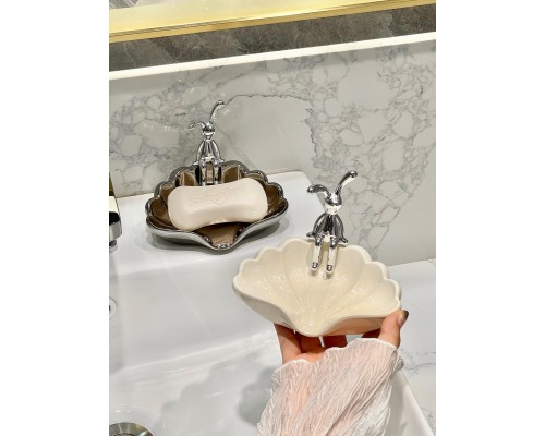 【銀色+奶黃】貝殼肥皂盒 (NT448)