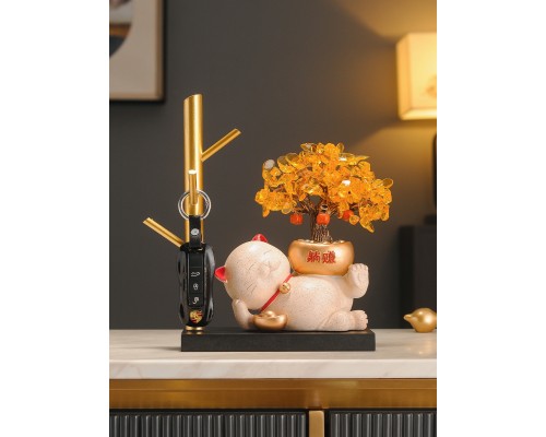 招財貓發財樹入戶門口鑰匙收納玄關擺件鞋柜家居裝飾喬遷新居禮品