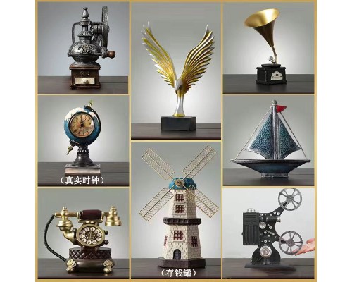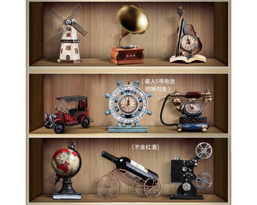 書柜復古小擺件組合套裝擺件留聲機客廳歐式輕奢酒柜裝飾品柜子
