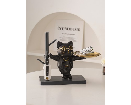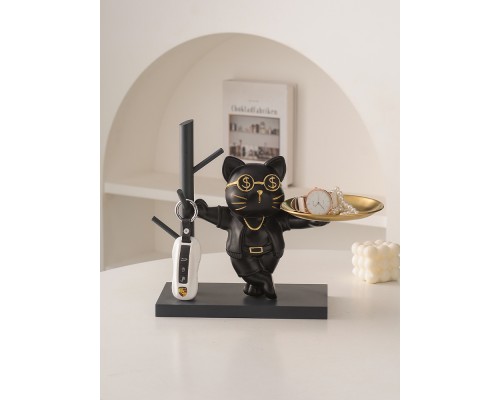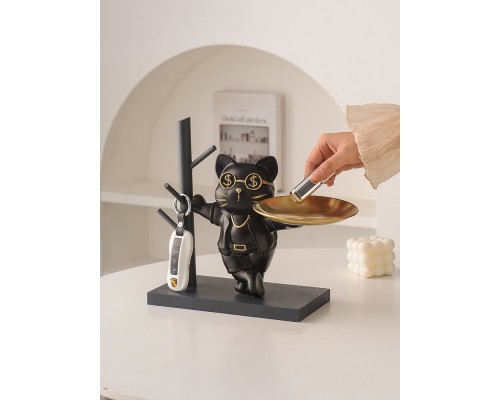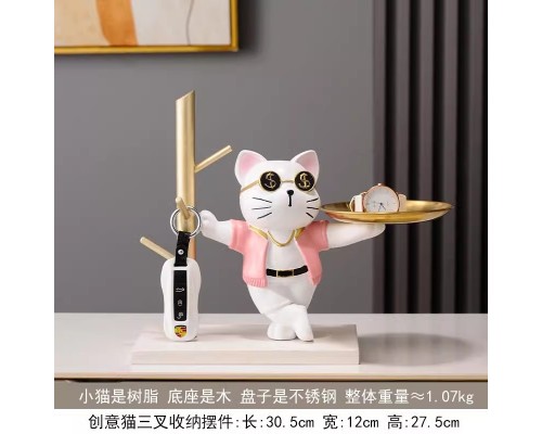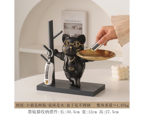 放鑰匙收納置物架入戶玄關客廳餐邊柜托盤北歐卡通貓家居裝飾擺件